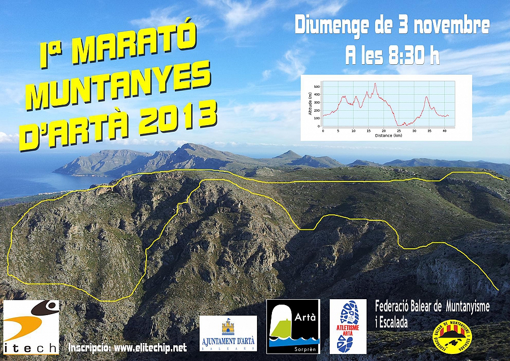 Recorregut de muntanya i pista forestal de 42 Km amb un desnivell positiu de 1300 metres, aproximadament, a Artà el dia 3 de novembre de 2013