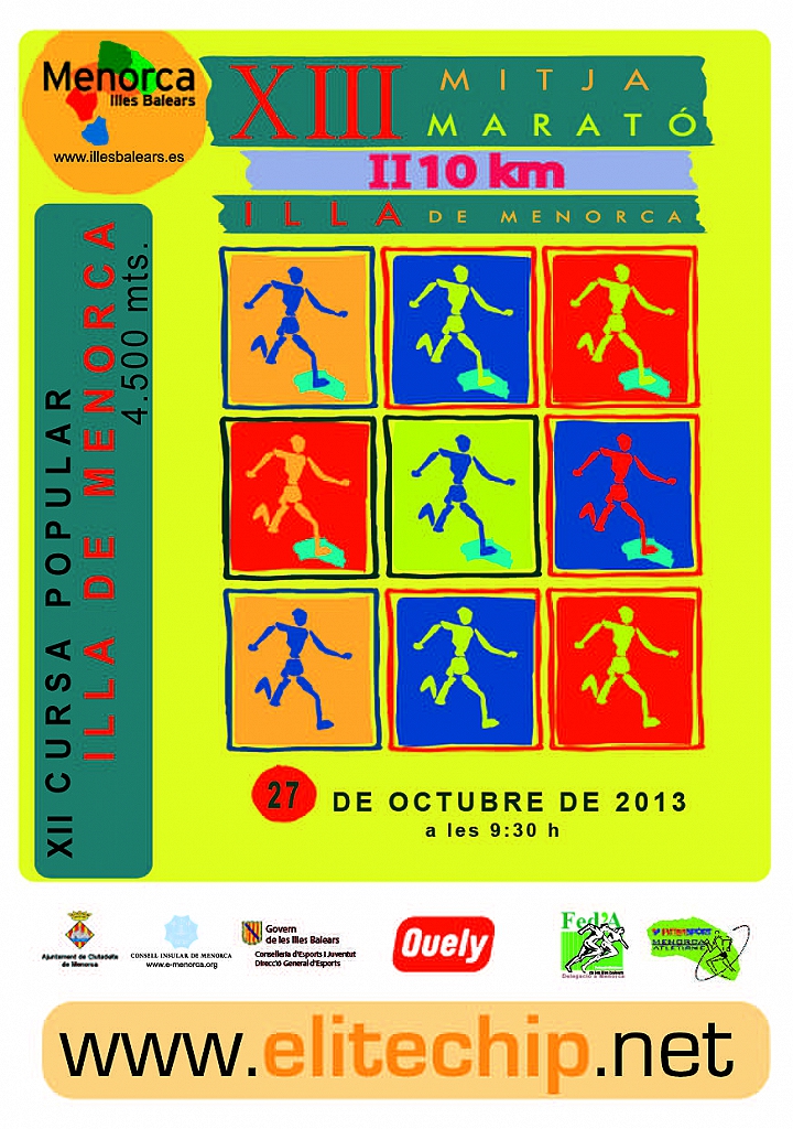 XII Mitja Marato Illa de Menorca- El preu de la inscripció és de 18 € fins al 30-9-2013. Entre el 1 de octubre y el 15 de octubre de 2013, el precio de la inscripción será de 21 €, y del 16 de octubre al 25 d’octubre de 2013 el preu de la inscripción será de 25 €.