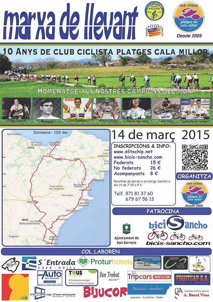 Sábado, 14 de Marzo. A las 9:30 h. Son Servera Organiza: Club Ciclista Platges de Cala Millor
