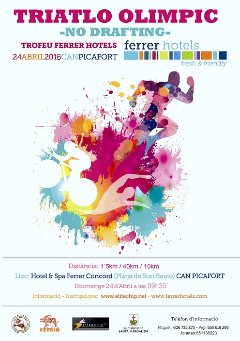 El Ayuntamiento de Santa Margalida con colaboración del Atletic club picafort y Ferrer-Hotels organizan el 1º triatlón olímpico de Can Picafort el día 24 de abril de 2016 a las 9:30 la salida Individual y a las 09h45’ equipos de relevos. (Estas salidas pueden ser modificadas según el número de participantes).
