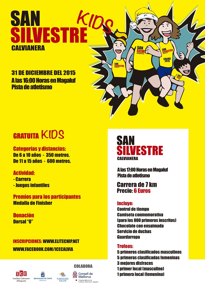•  Dijous 31 de  desembre des de  les 15:00 h a la Pista de Atletisme de Calvià.