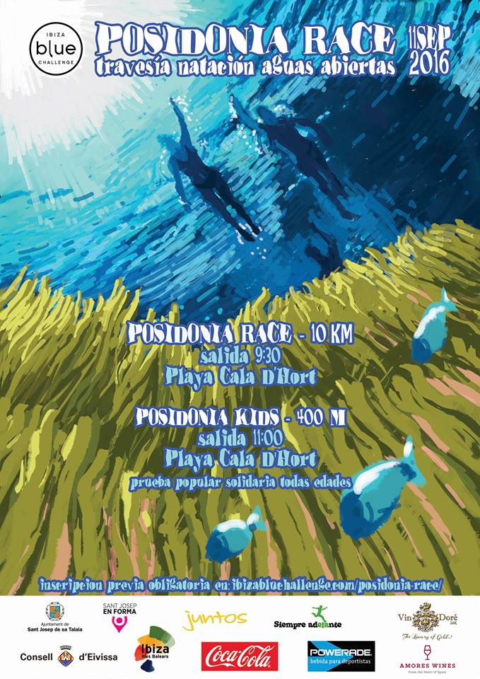 La posidonia race es una travesía de natación en aguas abiertas sobre la distancia de 10km que cuenta, dentro de su programa de actividades, con una prueba popular de 400m. Este evento está organizado por ibiza blue challenge y contribuye a recaudar fondos para dos ONG. La belleza del entorno es la principal característica de una travesía situada en la costa oeste de Ibiza, transcurre entre la isla de es Vedrà y la playa de Cala D´hort en el municipio de San José.