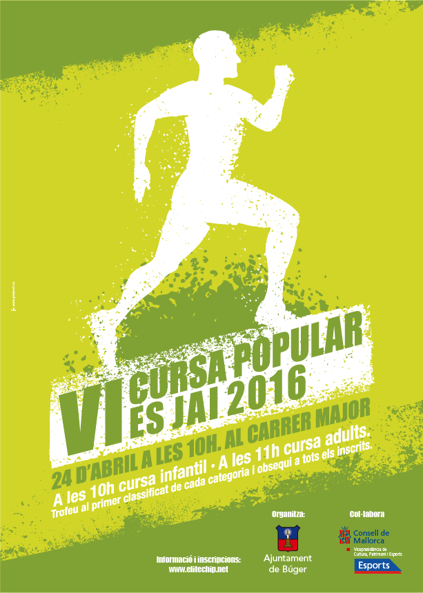 La VI Cursa Popular Es Jai 2016 es celebrarà dia 24 d'abril al terme municipal de Búger i constará de un circuit de 6,1 kms.