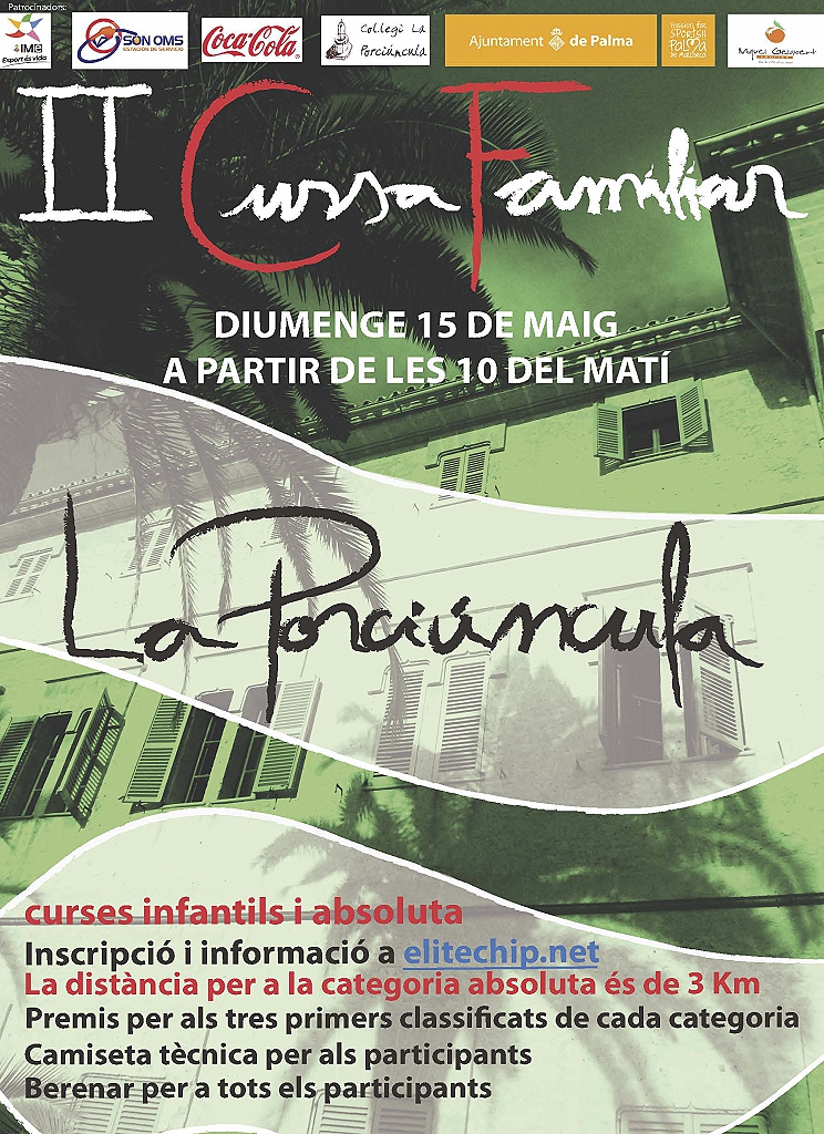 Article 1. Organització. -L'escola La Porciúncula organitza la " II CURSA FAMILIAR LA PORCIÚNCULA". Aquesta es celebrarà dia 15 de maig de 2016 amb el següent horari: