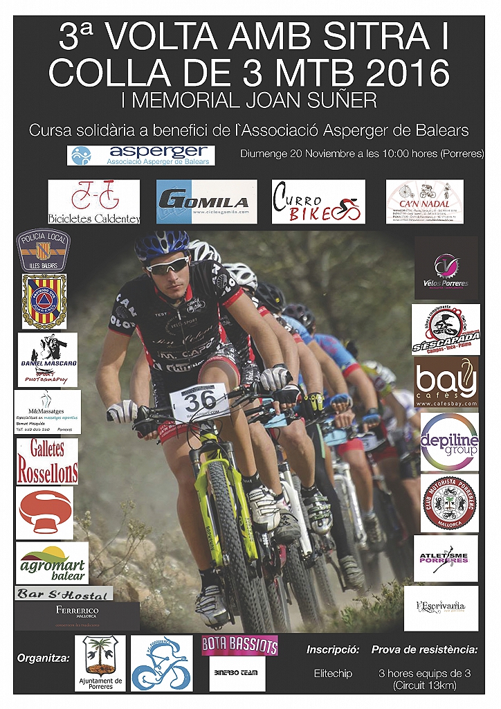 L'ajuntament de Porreres, la Penya ciclista de Porreres, Binerbo Team i Bota Bassiots organitzen “la III Volta amb Sitra i Colla de Tres MTB. I Memorial Joan Suñer” el diumenge 20 de Novembre a les 10:00 hores a Porreres. Es tracte d’una cursa de MTB de caire popular per colla de tres, que consisteix en donar el nombre màxim de voltes al recorregut durant un temps de Tres hores.