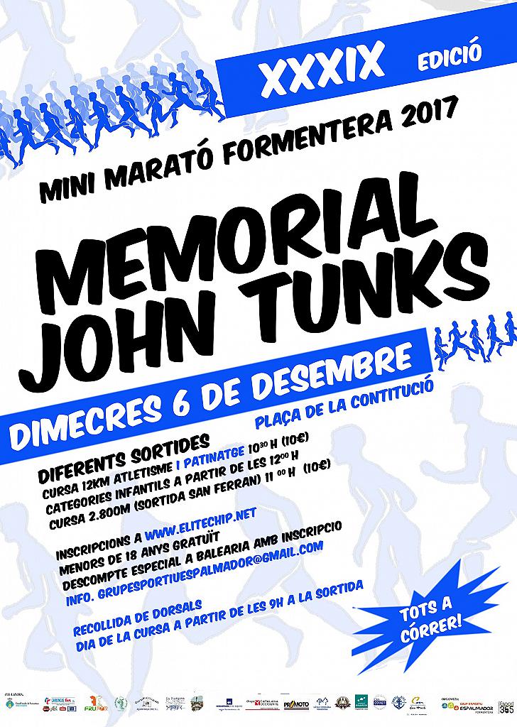 La prueba deportiva denominada «XXXIX MINI MARATÓN – MEMORIAL JONH TUNKS 2017», se celebrará en Sant Francesc Xavier de Formentera, el miércoles 06 de diciembre de 2017 a las 10:30 h y constará de 2 modalidades deportivas, atletismo y patinaje.
