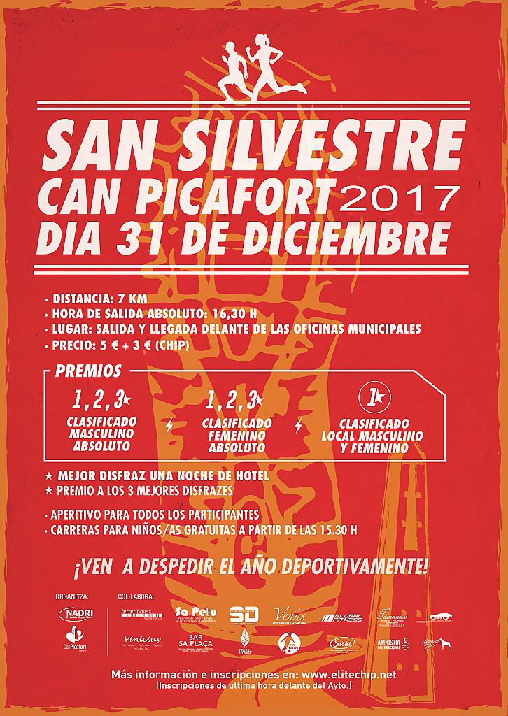 Recogida de dorsales: 31 de diciembre de 15h a 16:15 h en frente Oficinas municipales Delegación de Can Picafort