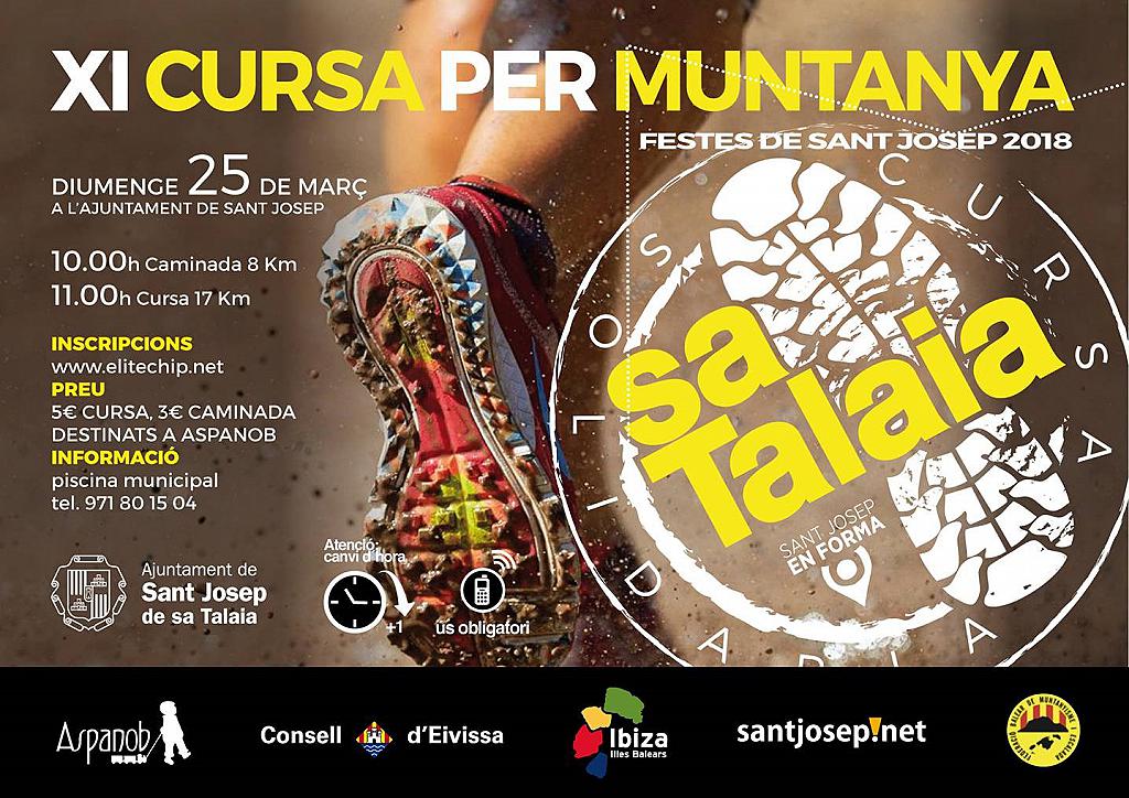 1. La XI Cursa de Muntanya sa Talaia és una prova d'atletisme per muntanya organitzada per l'Ajuntament  de Sant Josep de sa Talaia. La  prova tindrà lloc el diumenge 25 de març de 2018.
