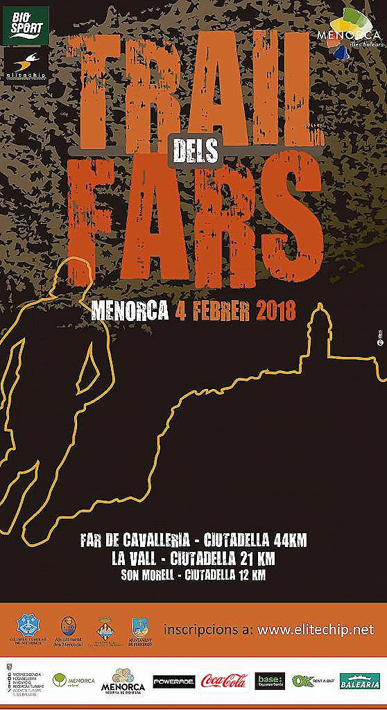 2.         El Trail dels Fars se disputará el 4 de Febrero y constará de 3 pruebas, la Maratón con salida en el Far de Cavalleria y llegada en Ciutadella (44 Km.). La Media Maratón (21km) con salida en el aparcamiento de La Vall, hasta Ciutadella y otra carrera popular (11,8km) entre Son Morell y Ciutadella. Las tres llegadas serán en la Piscina Municipal Tita Llorens de Ciutadella.