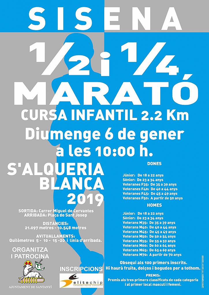 RECOLLIDA DE DORSAL, XIP I OBSEQUI : Diumenge 6 de gener, a la Plaça de Sant Josep de S'ALQUERIA BLANCA, fins a 30 minuts abans de l'inici de la prova.