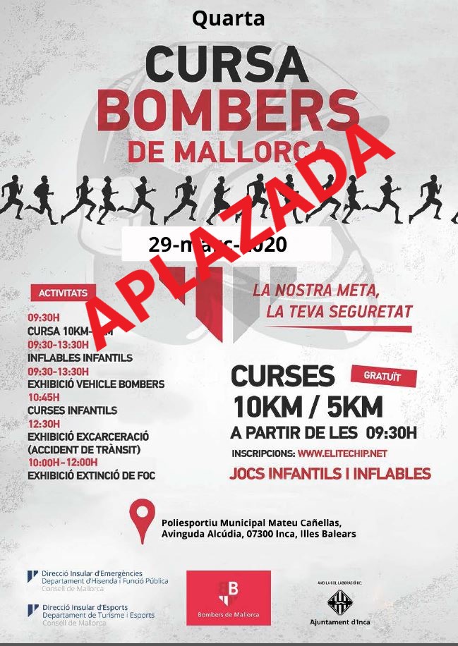 Organització – Els Bombers de Mallorca organitzen la ‘' IV CURSA BOMBERS DE MALLORCA'' la celebració tindrà lloc el diumenge 29 de març de 2020.