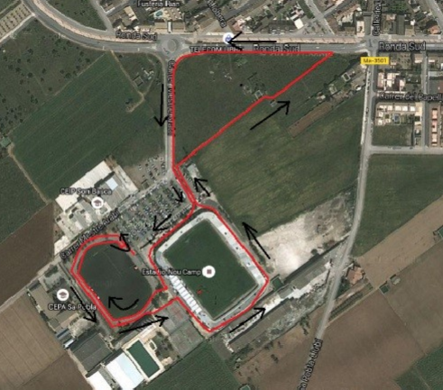 • 4 voltes a un circuit de 5km a un circuit urbà. Ronda Oest i Sud (des de rodona de Muro fins a rodona de Palma)